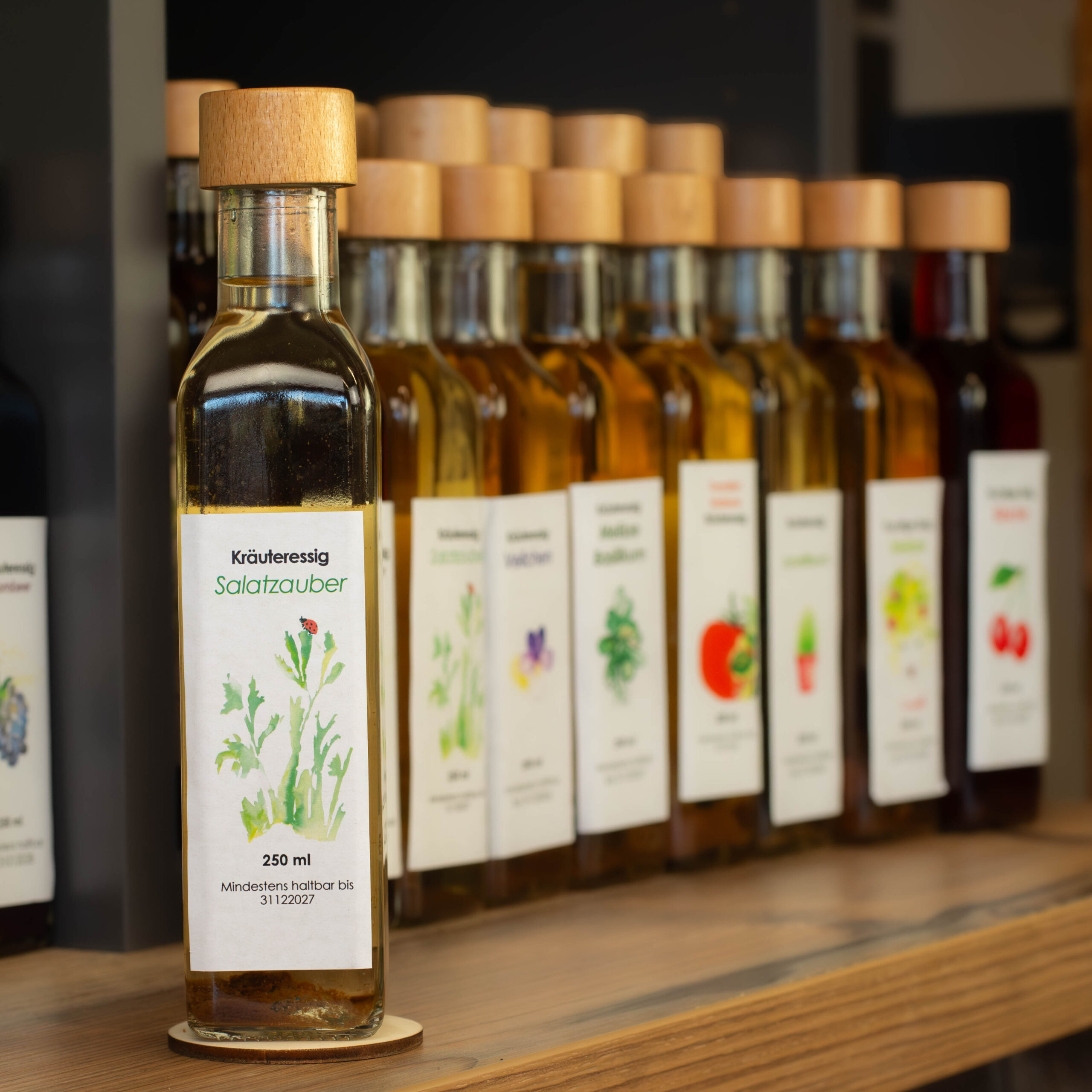 Für unseren Essig wird feinster BIO-Weißweinessig mit handverlesenen Kräutern, Obst und Gemüsesorten veredelt.