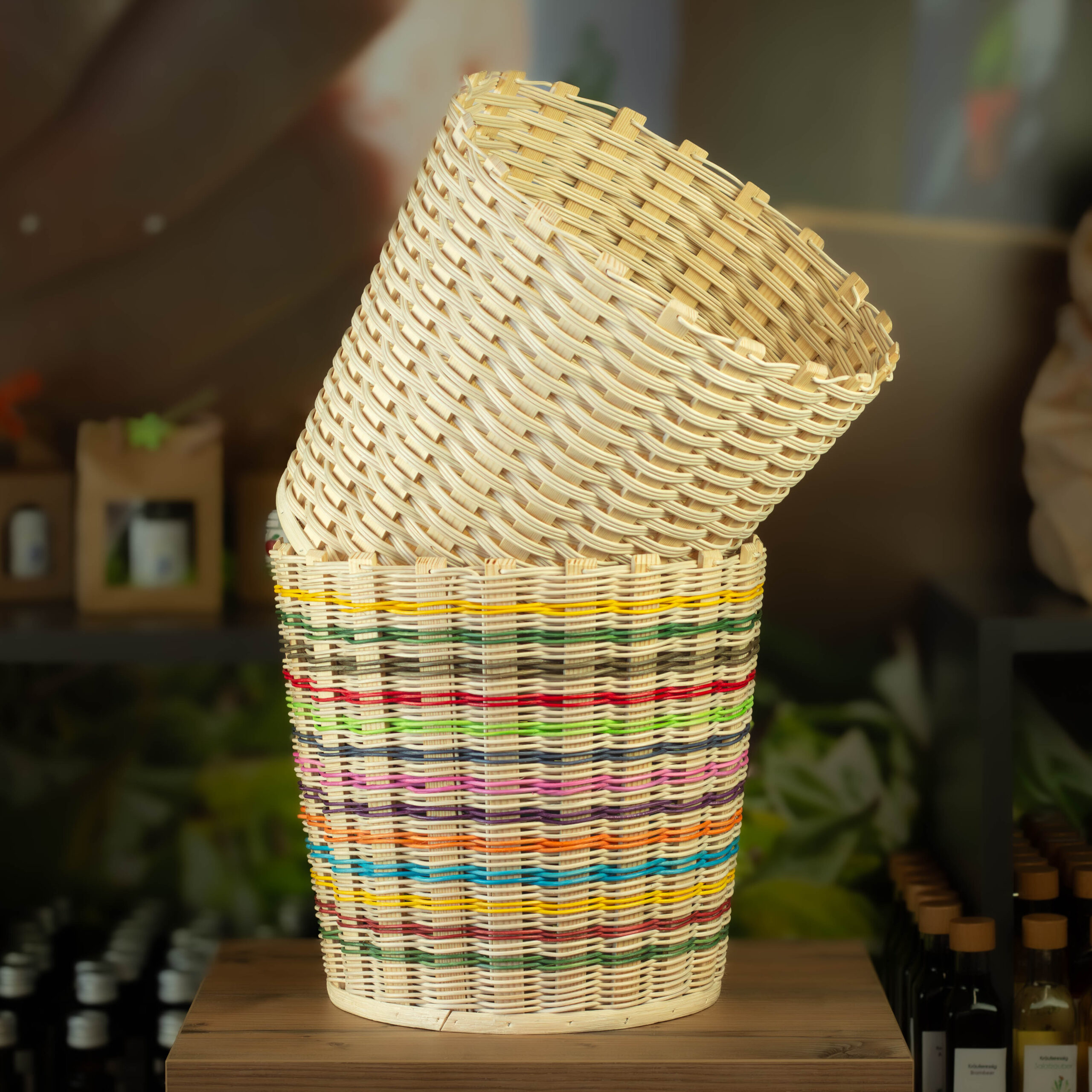 Die umweltfreundliche Alternative zum Plastikmülleimer ist der handgeflochtene Papierkorb.