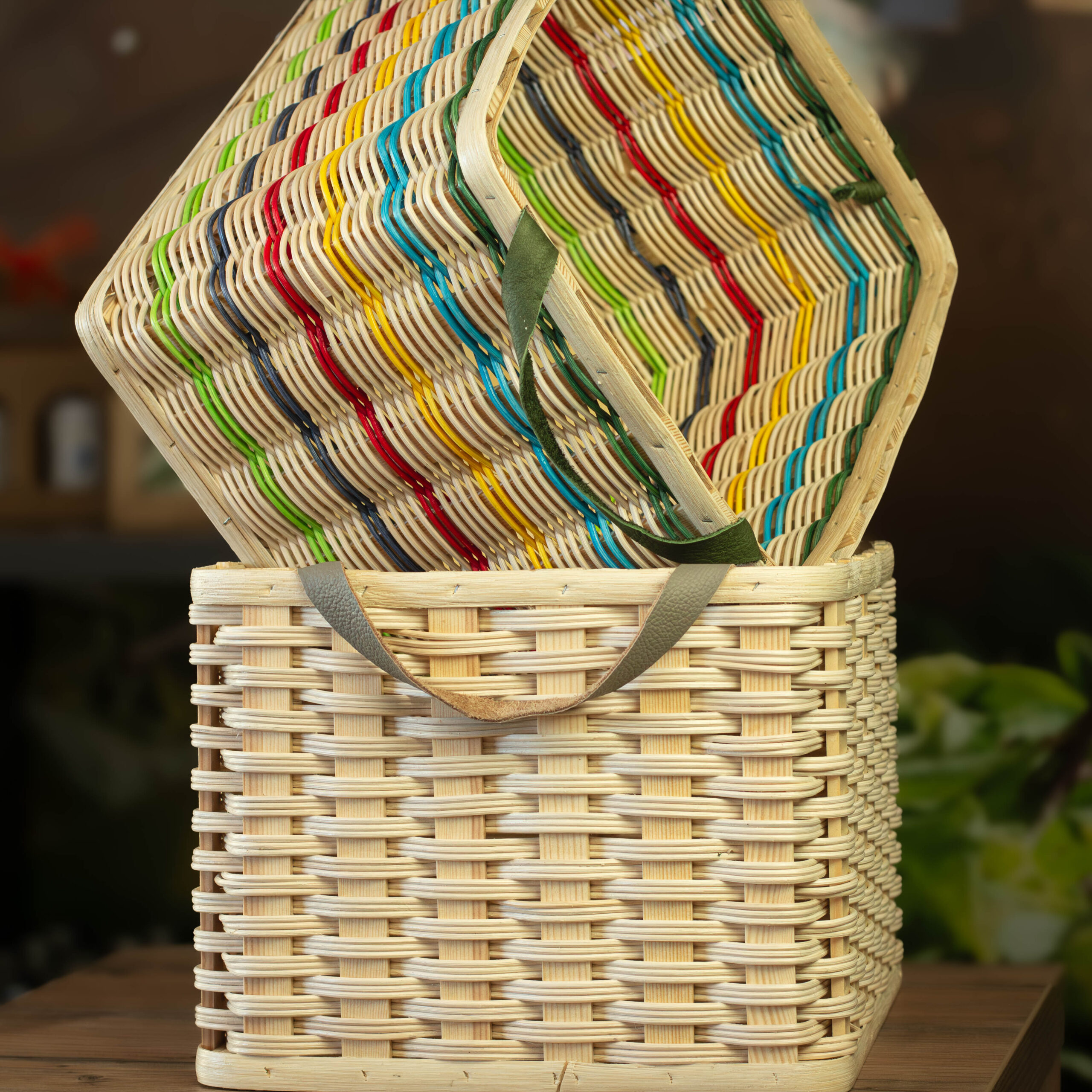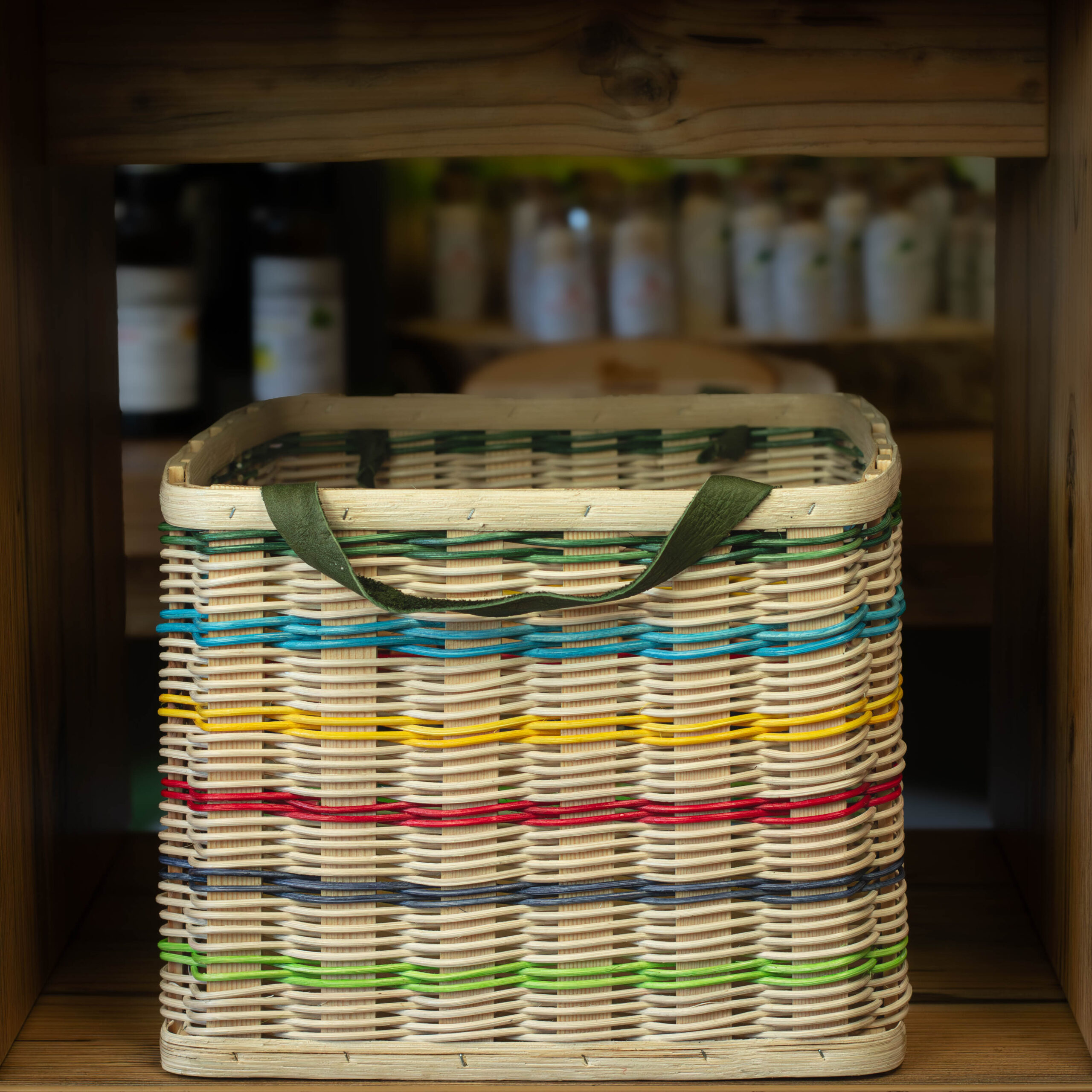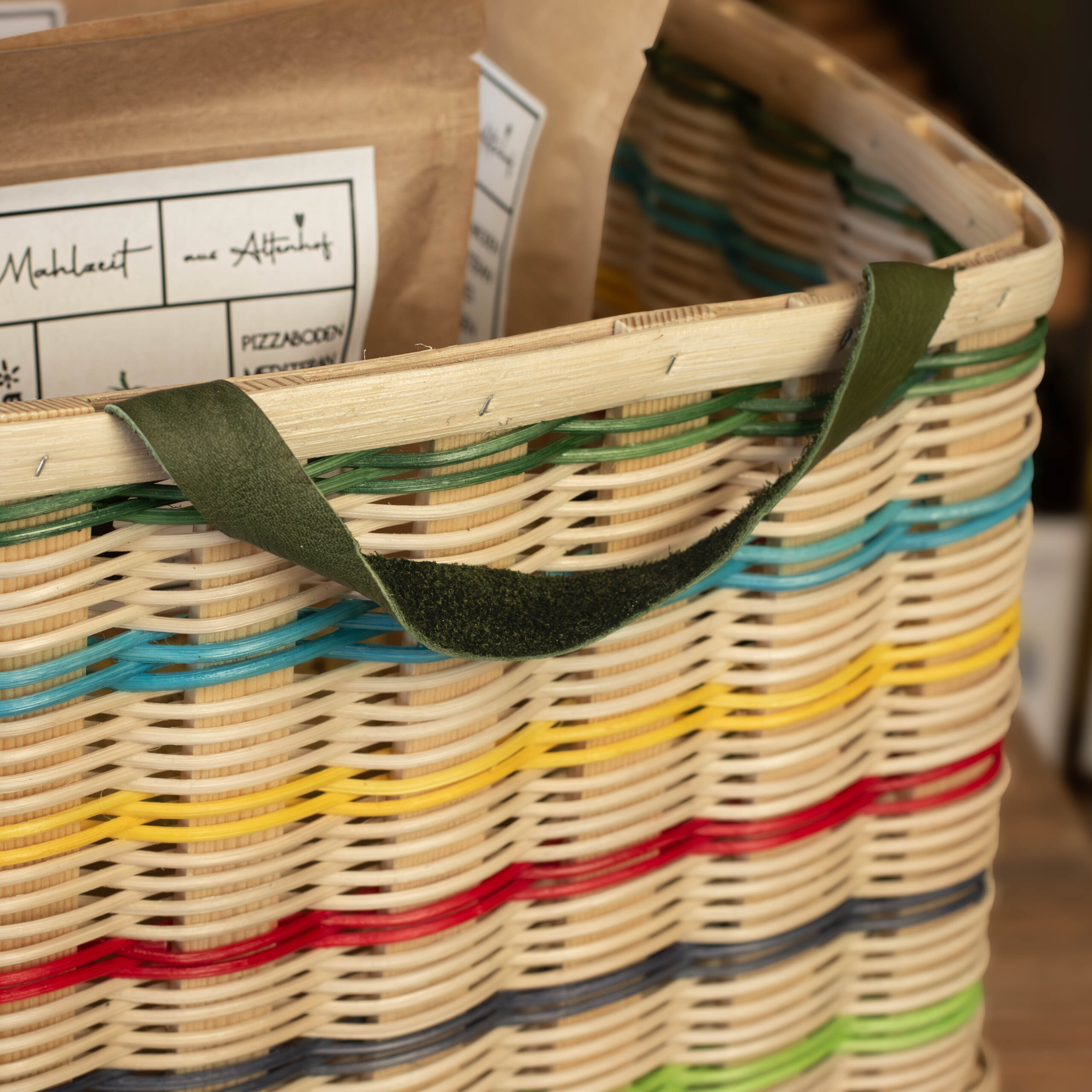 Der Grundaufbau des Regalkorbes ist Natur, doch man kann Farben hinzufügen.