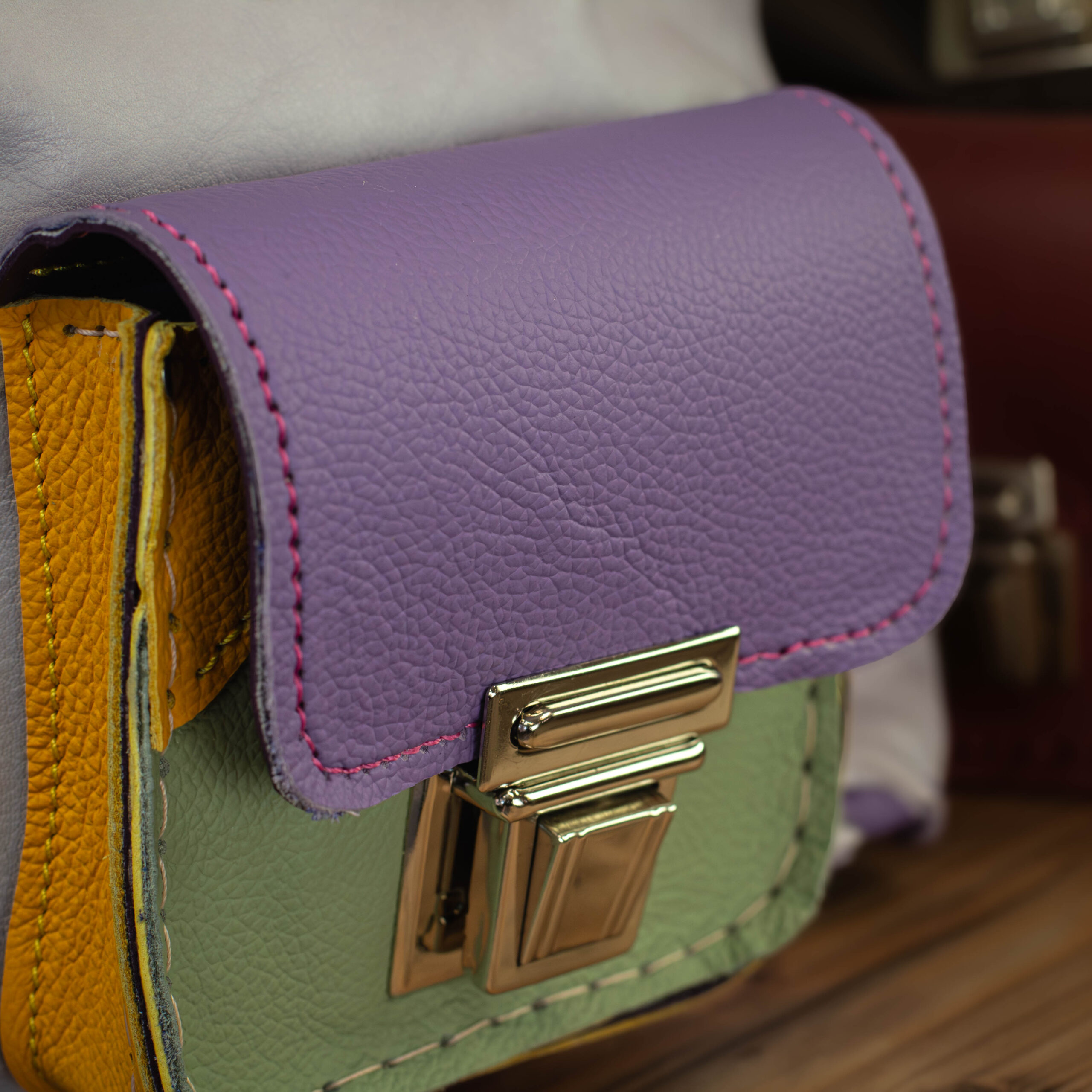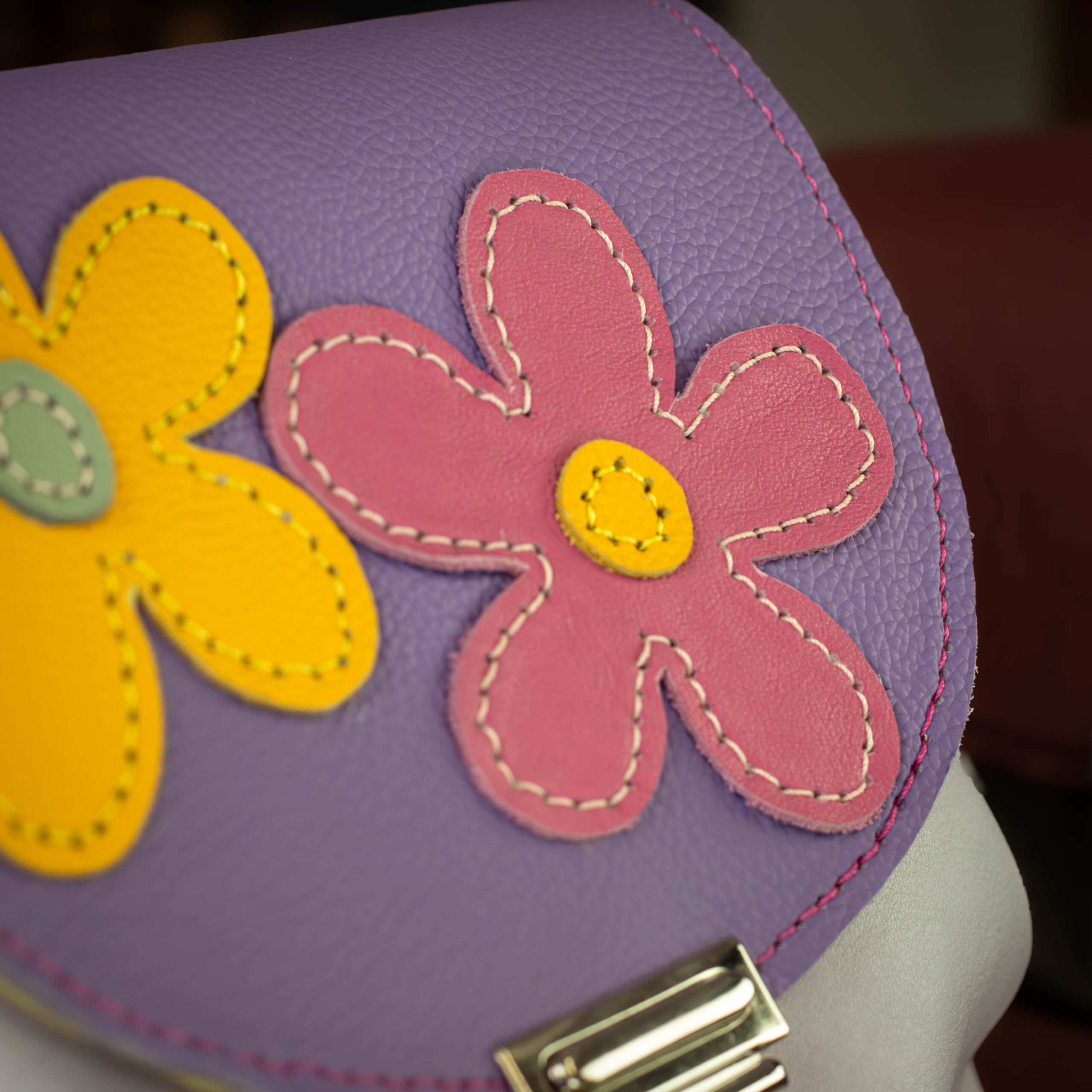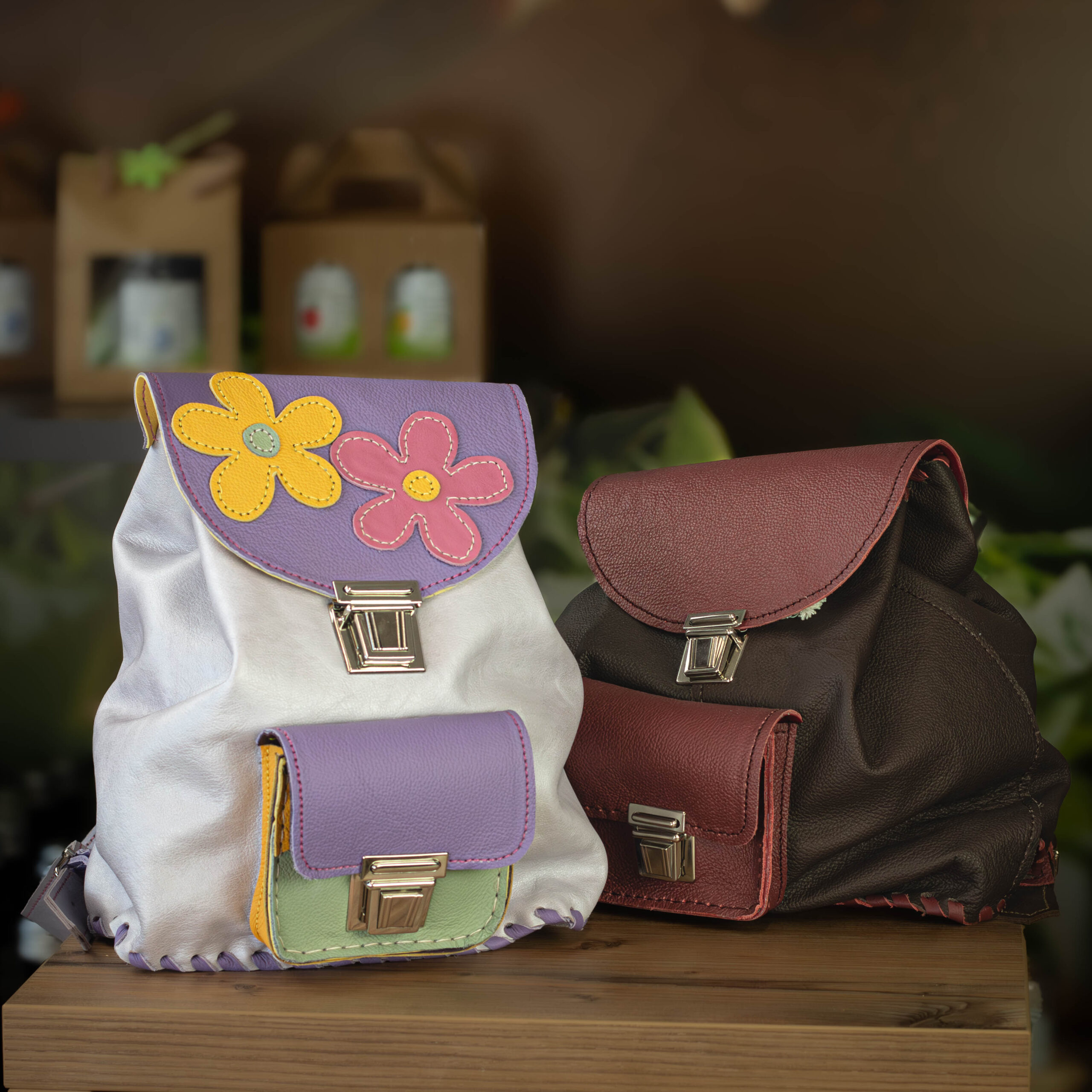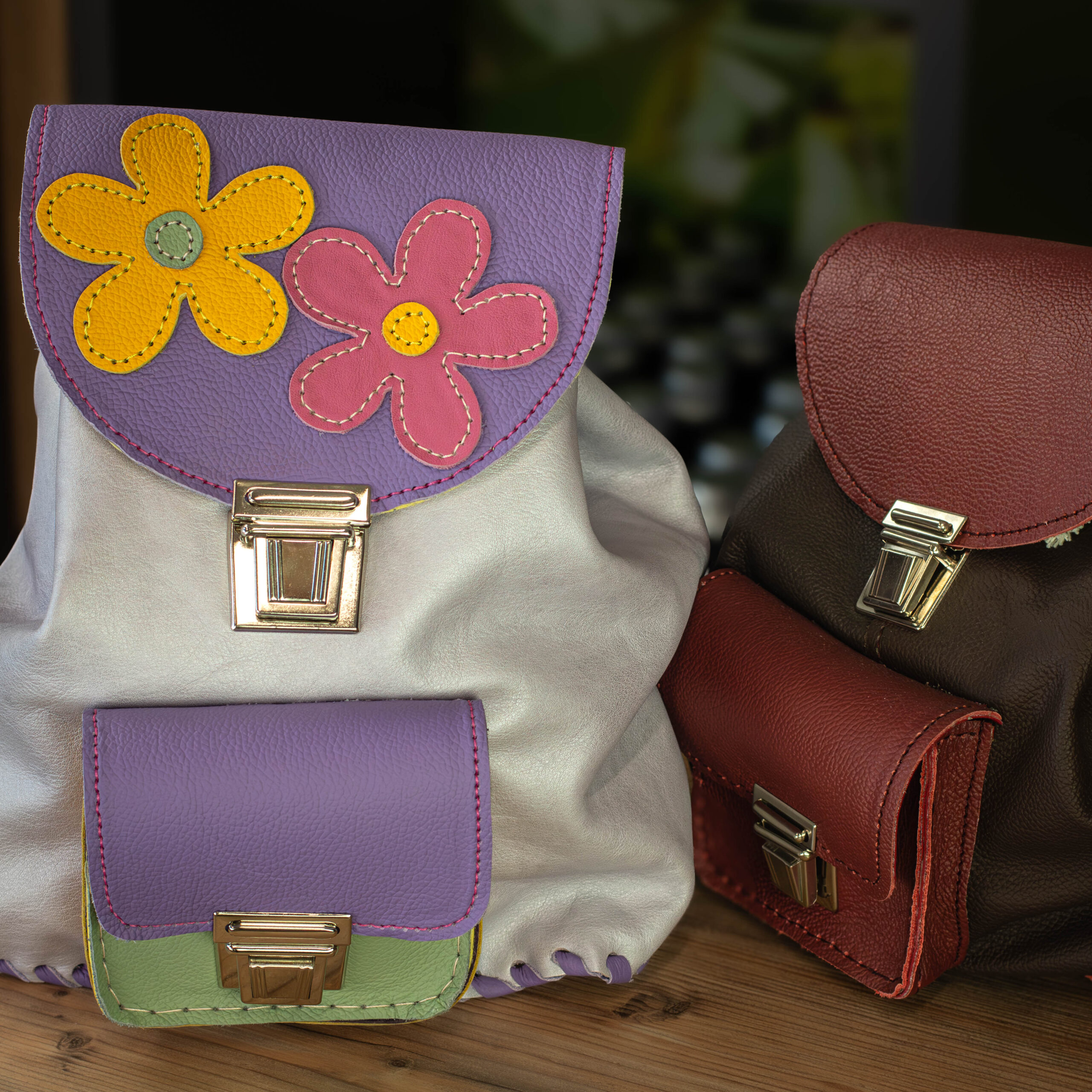 Handgefertigt, mit Stoffsack innen, kleines Außenfach, verstellbare Riemen.